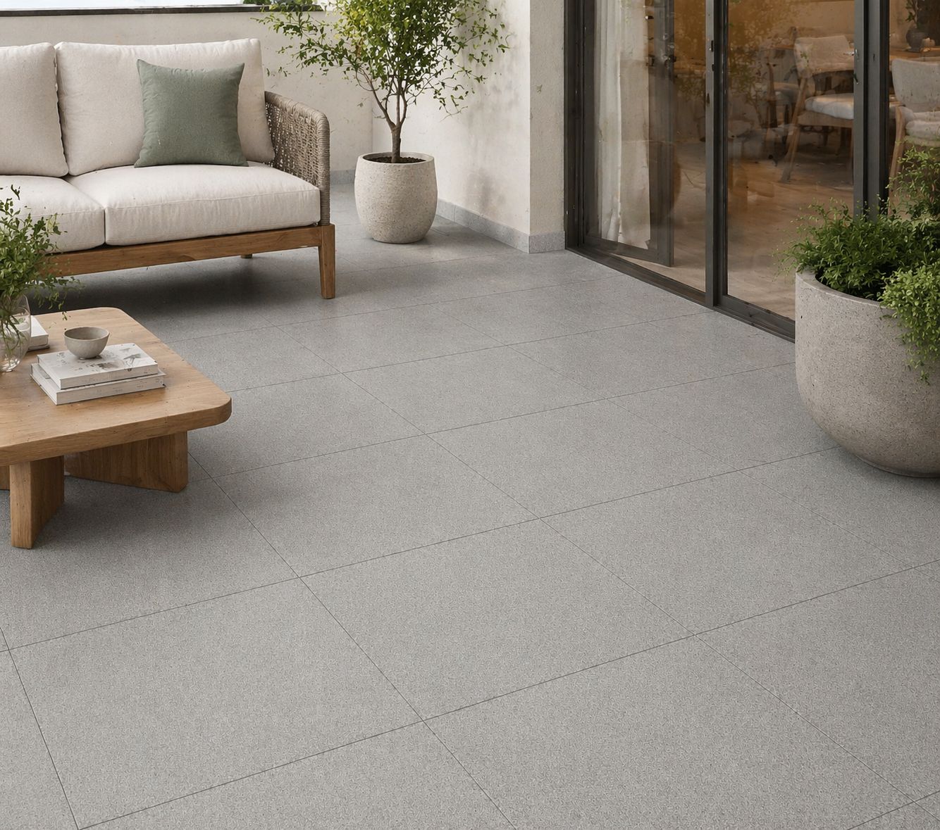 Esta cerámica en formato 45×45 cm destaca por su acabado tipo cemento en tono gris claro, ideal para quienes buscan un estilo moderno, limpio y versátil. Su textura sutil aporta profundidad visual sin recargar el espacio, logrando ambientes elegantes y equilibrados.