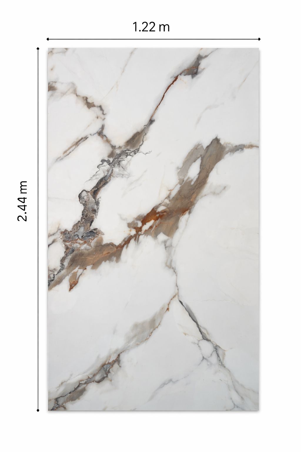 La lámina SPC Picasso destaca por su diseño elegante e impactante, inspirado en el lujo del mármol natural. Su superficie presenta vetas en tonos grises, beige y sutiles matices cobrizos que crean un efecto artístico único, ideal para ambientes sofisticados y modernos. Con formato 1.22 x 2.44 m, ofrece una cobertura amplia, continuidad visual y menor cantidad de uniones, logrando espacios más limpios y estéticos.