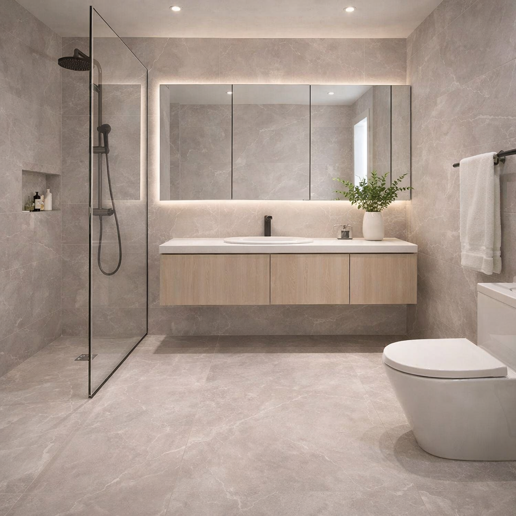 El porcelanato 60×60 es una opción versátil y moderna, ideal para pisos y muros en interiores y exteriores techados. Su formato equilibrado permite una instalación ordenada y continua, aportando amplitud visual y un acabado elegante a cualquier espacio.